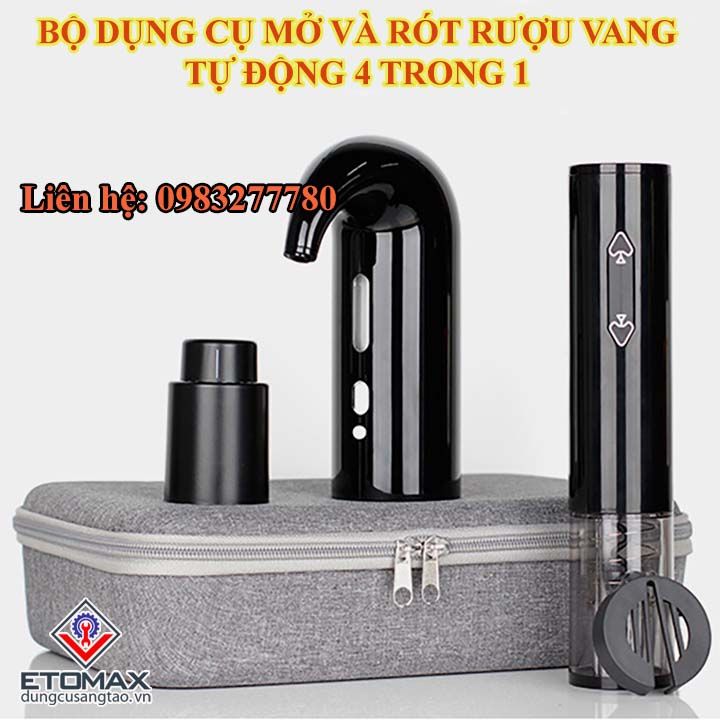 Bộ dụng cụ mở rượu vang tự động nay đã có thêm dụng cụ rót rượu tự động việc thưởng thức rượu vang giờ đây đã có thể diễn ra hoàn toàn tự động từ việc khui nắp chai đến việc rót rượu việc của bạn chỉ là nhâm nhi và thưởng thức chúng