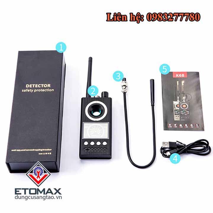 K68 là loại máy thế hệ mới sử dụng sử dụng chip điều khiển thế hệ mới với nhiều cải tiến so với các đời máy trước đây giúp dò tìm phát hiện tần số của các tín hiệu như GSM, CDMA, 3G, 2G, 4G. Thiết bị K68 có thể tìm ra chính xác thiết bị định vị theo dõi, camera không dây wifi, nguồn bức xạ điện, thiết bị phát sóng wifi,... giúp bạn có thể ngăn chặn hiệu quả các vi phạm, gian lận và bảo vệ thông tin bảo mật cá nhân và bảo mật thông tin quan trọng cho cơ quan.