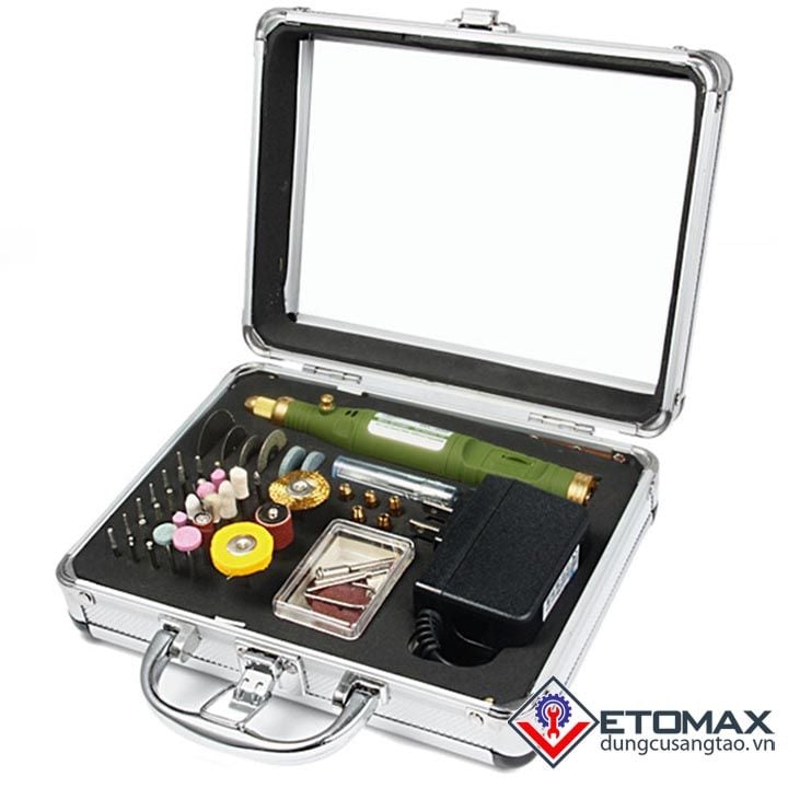 1. Máy khắc mài mini cao cấp WL-800 bản đủ, phiên bản này với thiết kế vỏ nhôm sang trọng phụ kiện hỗ trợ đầy đủ cho việc khoan, khắc, mài, đánh bóng, trà nhám...